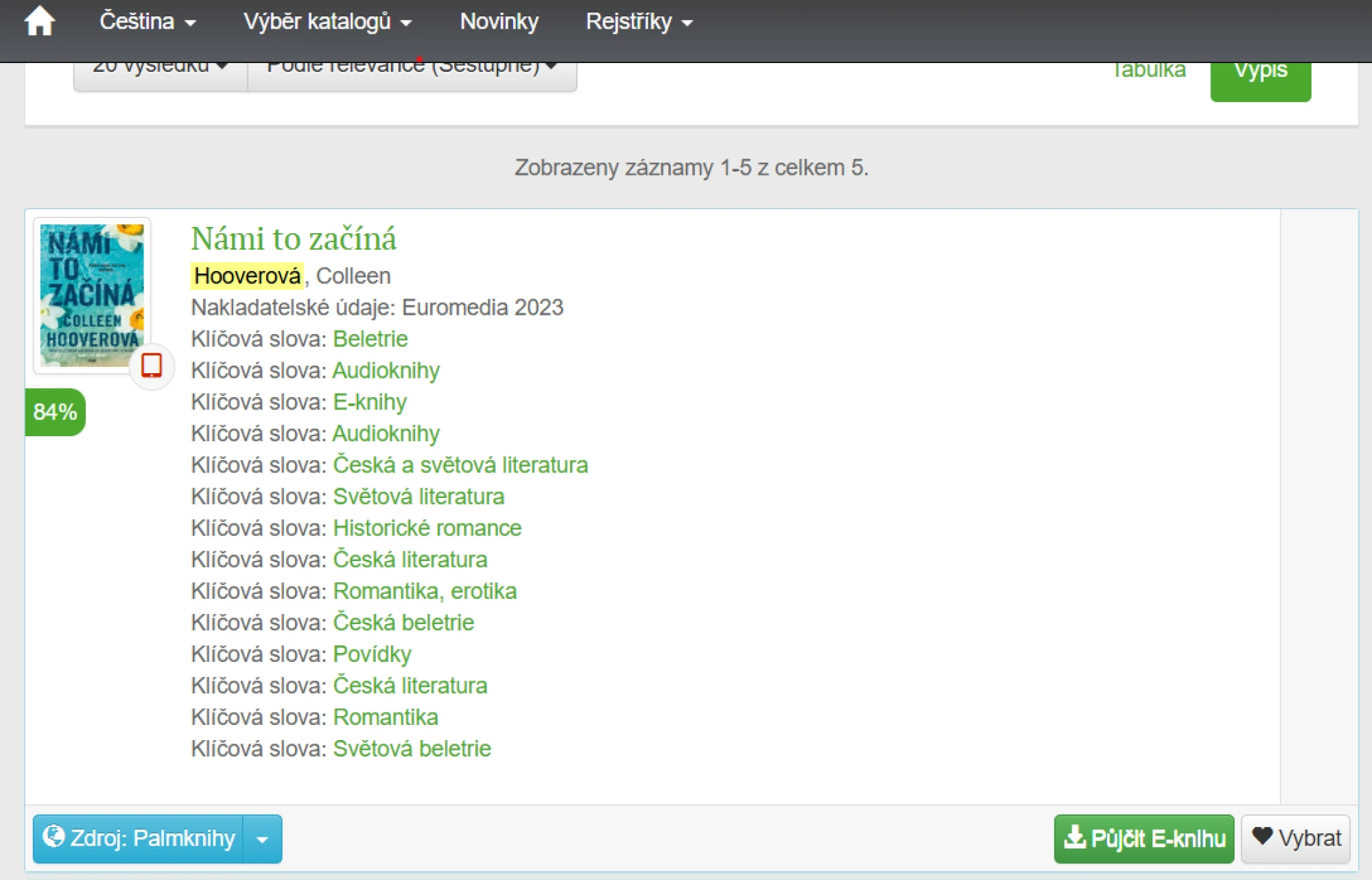 - Po vypůjčení naleznete e-knihu v aplikaci Palmknihy v sekci "Moje e-knihy." (za 31 dní se eVýpůjčka sama vrátí)