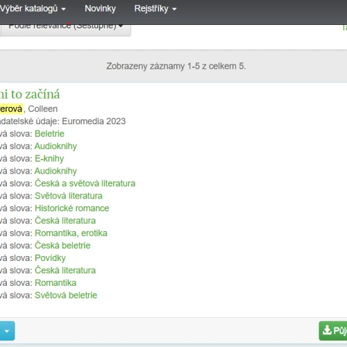 - Klikněte na tlačítko "Půjčit e-knihu" u vámi vybraného titulu.